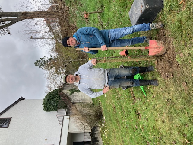 März 2026: Vorstand pflanzt Gewürz-luiken-hochstamm im Vereins-garten